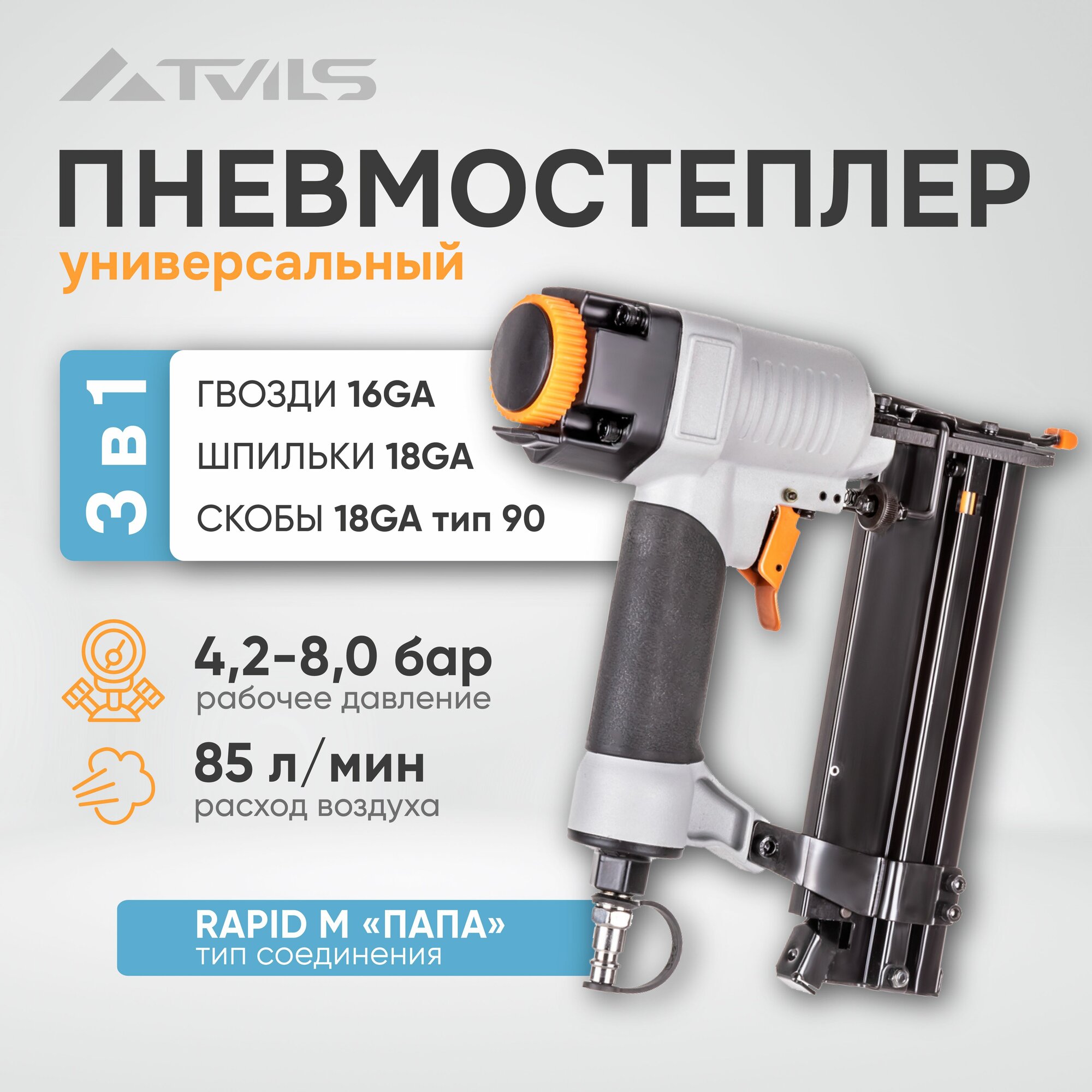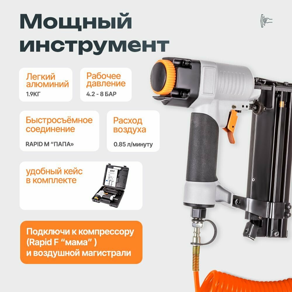 Универсальный пневмостеплер для гвоздей шпилек Foxweld 5752