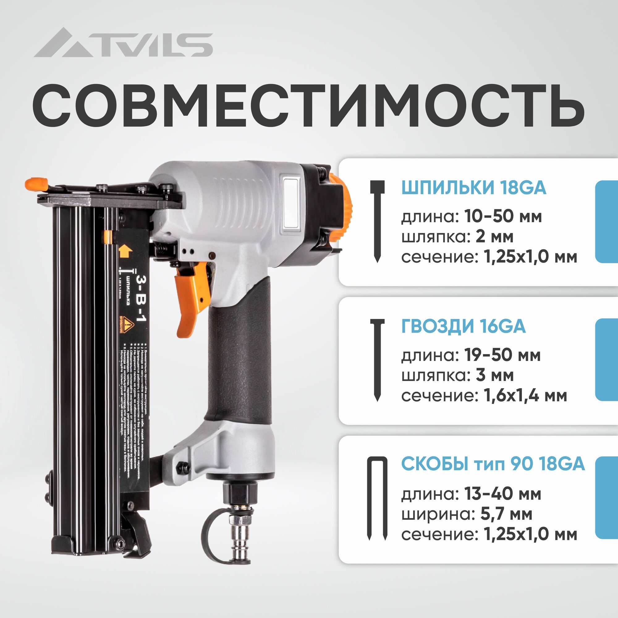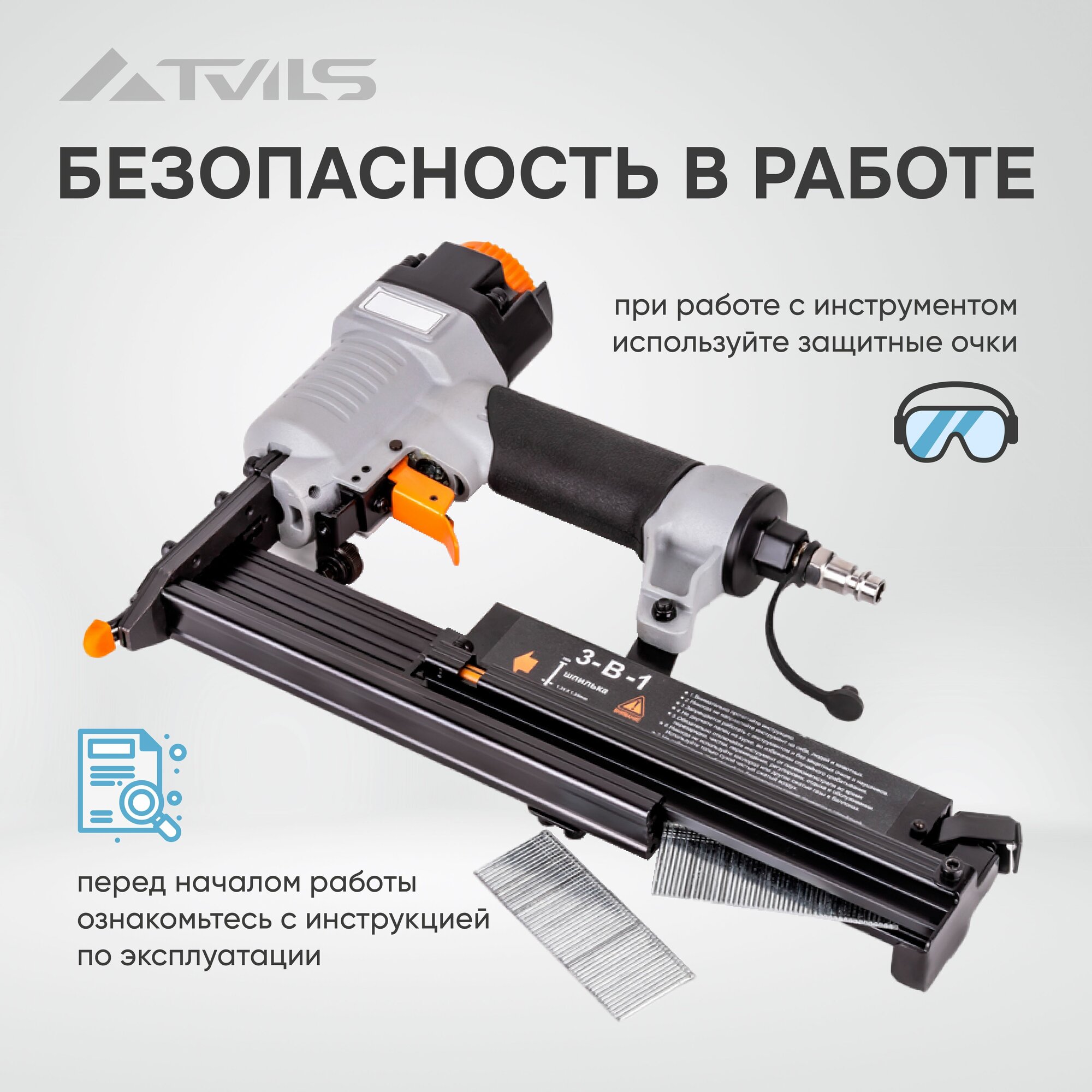 Универсальный пневмопистолет степлер для гвоздей, шпилек и скоб (3 В 1)