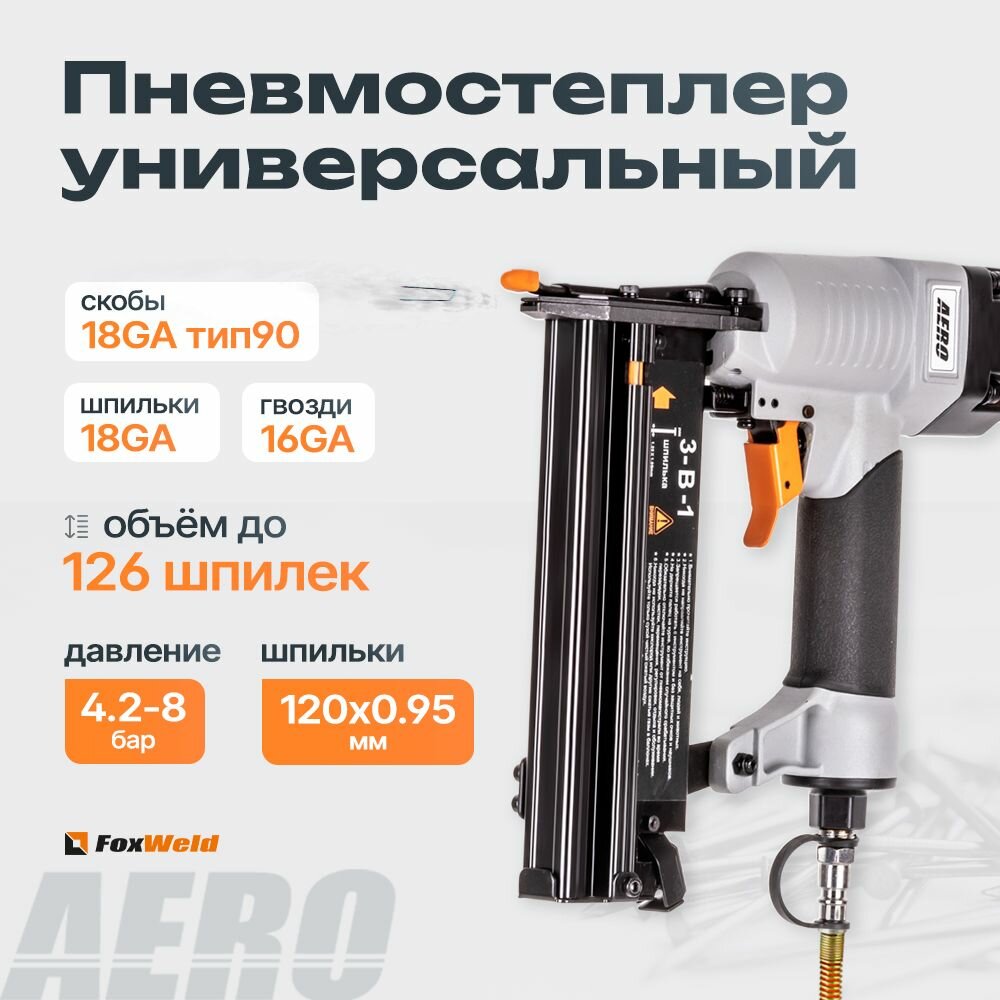 FoxWeld Универсальный пневмостеплер для гвоздей, шпилек и скоб (3 в 1) AERO - 5752