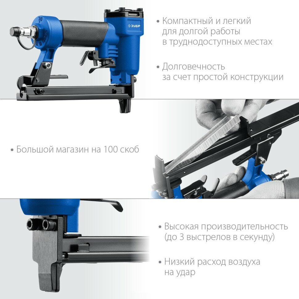 Пневматический степлер (скобозабиватель) ЗУБР 53F/140, скобы тип 53F (10-22 мм) и тип 140 (10-14 мм), Профессионал