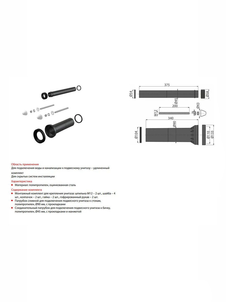 Купить Alcaplast M9000 Kомплект удлиненных дополнительных принадлежностей для подключения подвесного унитаза