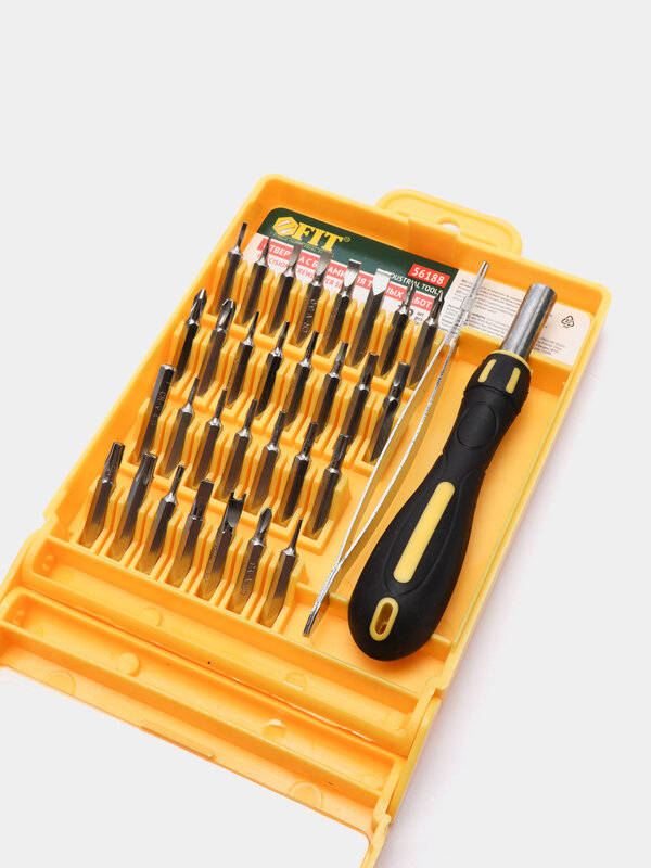 Отвертка с битами для точных работ, 30 CrV бит, пинцет, в пластиковом футляре