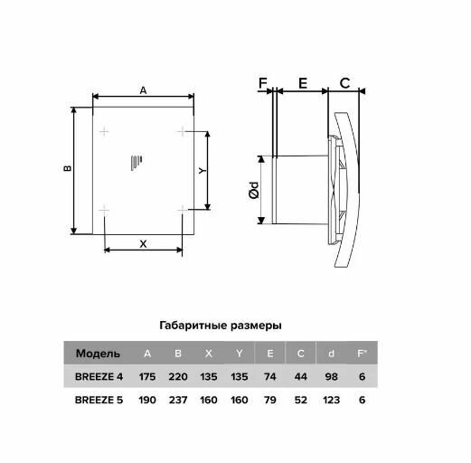 Вентилятор осевой вытяжной с обратным клапаном, D 125,BREEZE 5C