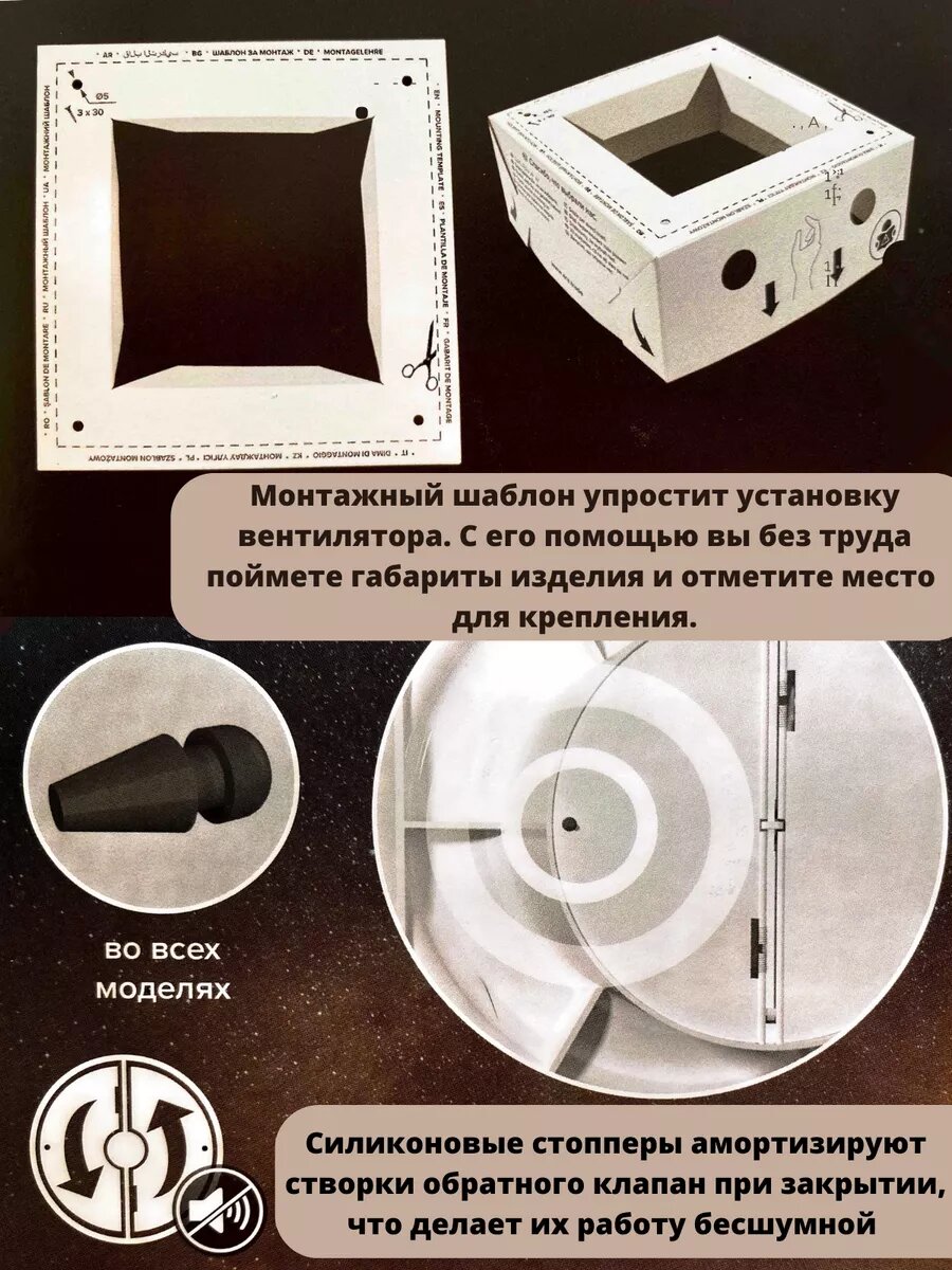 | Плюсы: | Мощный, стильный, удобно монтировать, декоративная накладка закрывает все изъяны стены вокруг вентиляционного отверстия, есть обратный клапан |