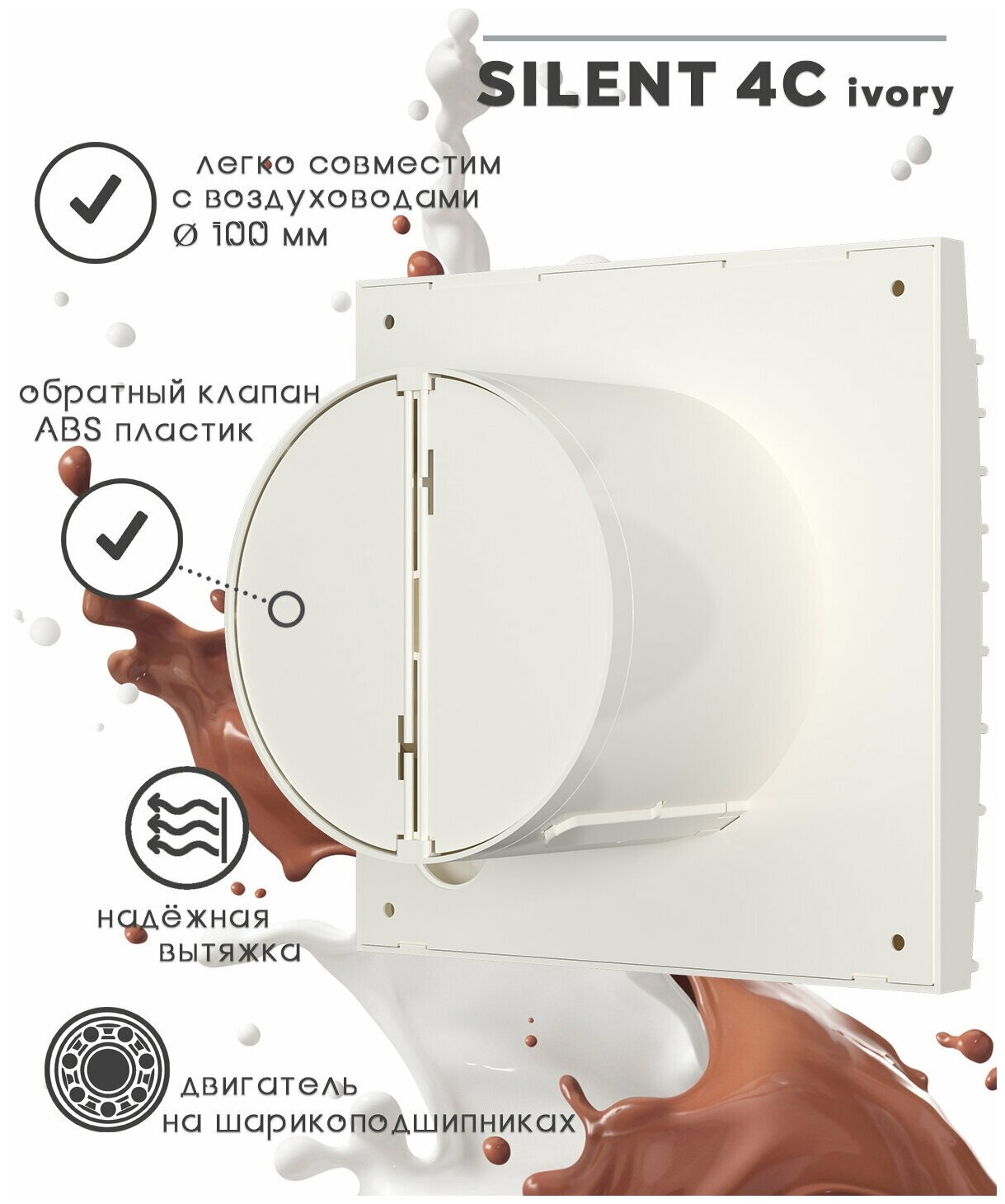 Вентилятор осевой вытяжной SILENT 4C, с обратным клапаном D 100, champagne
