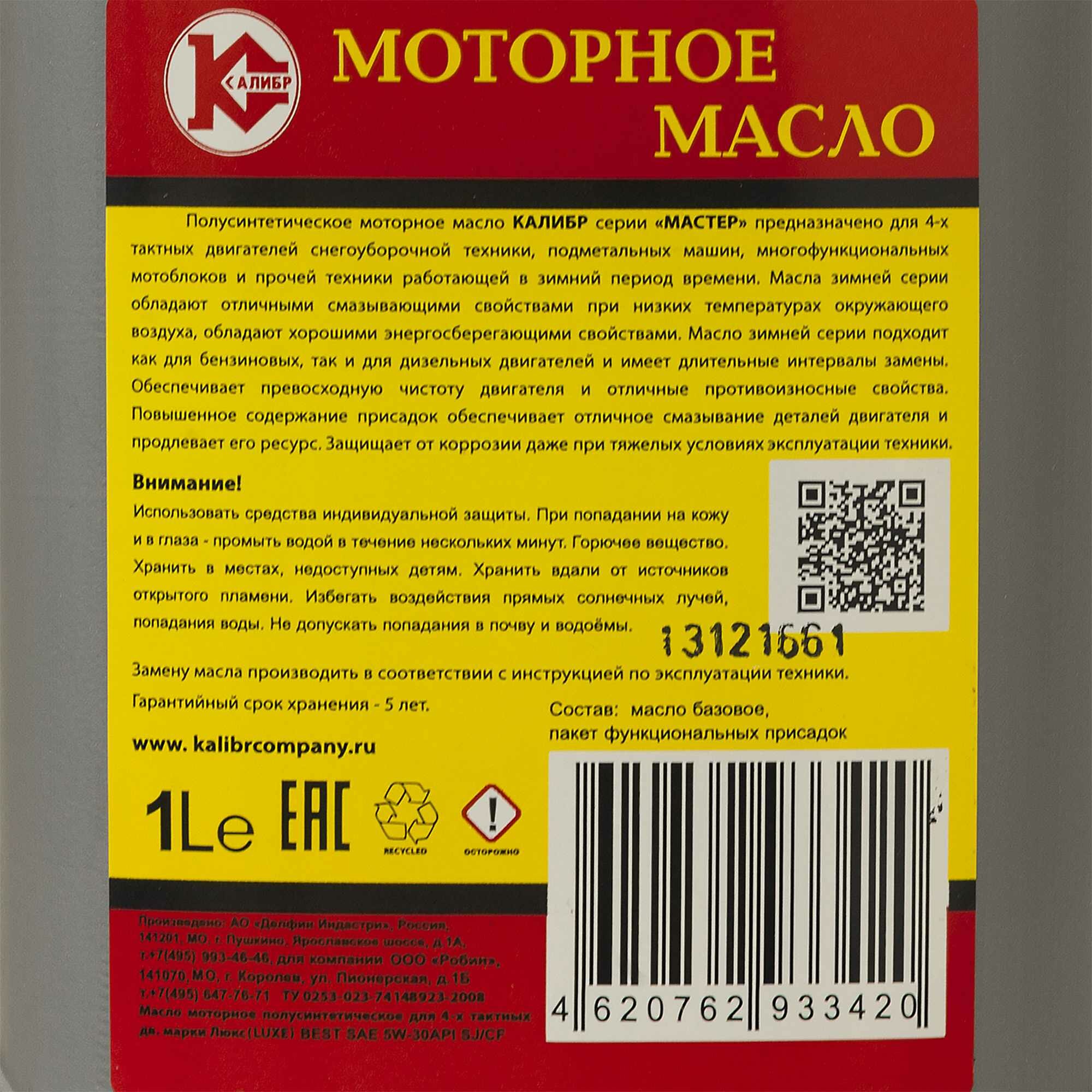 Полусинтетическое зимнее масло для 4-х тактных двигателей Калибр SAE 5W30 00000044264