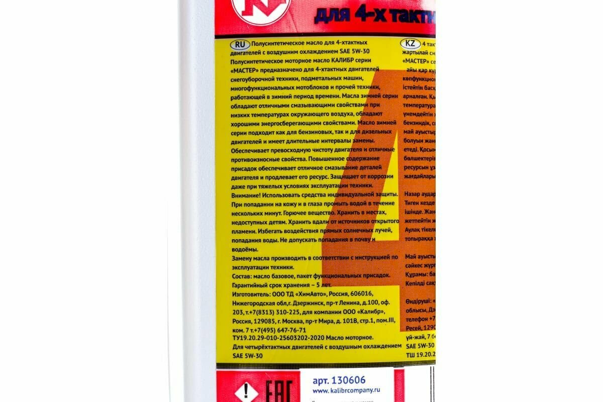 Калибр Масло моторное для 4-х тактных двигателей " Мастер" (п/с, SAE 5W30 зимнее,1л) 00000044264