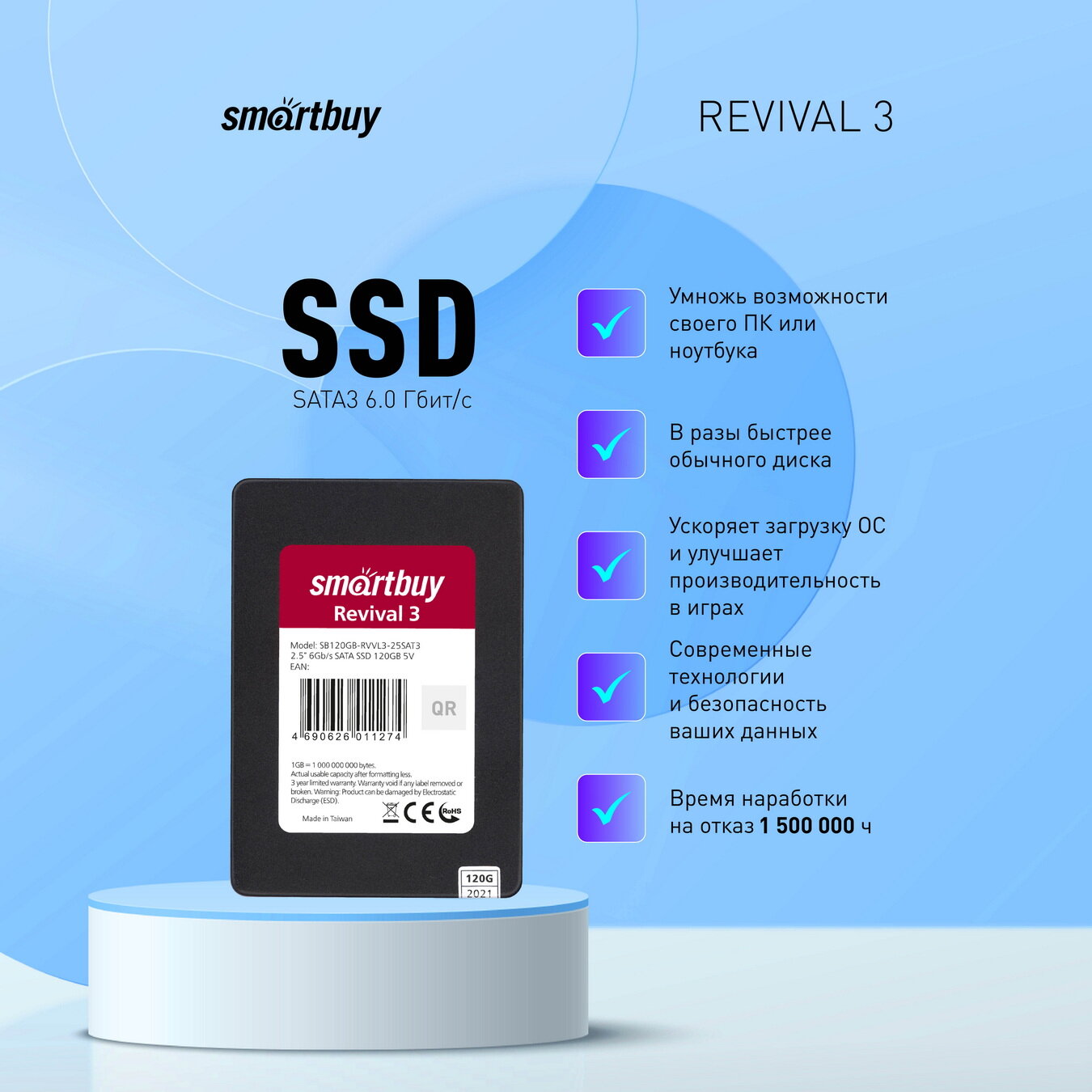 Накопитель SSD SmartBuy Revival3 SB120GB-RVVL3-25SAT3, 120Гб, SATA-III, 2,5", 3D TLC Smartbuy 510003 .