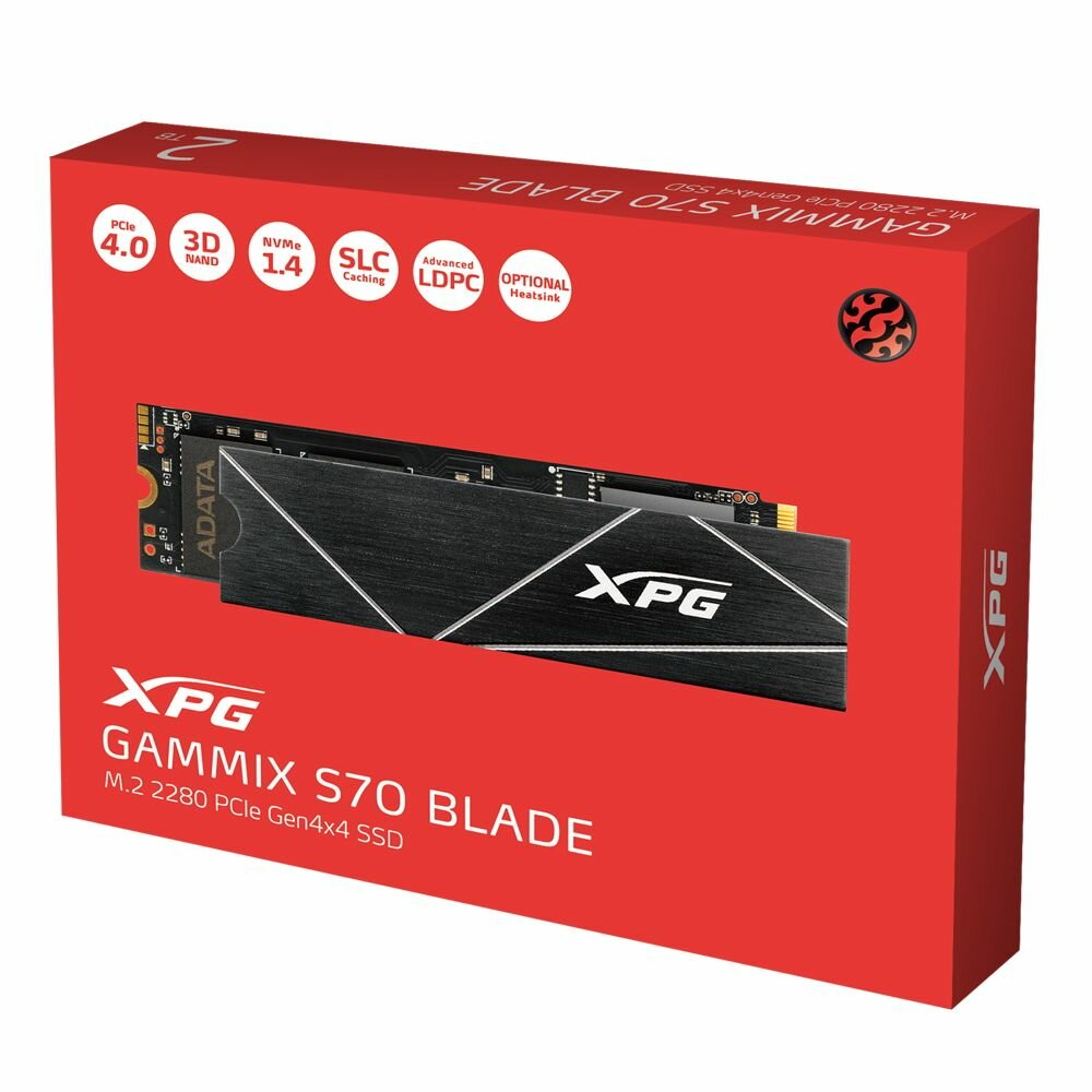 Внутренний SSD M.2 ADATA 1.0Tb XPG GAMMIX S70 Blade /AGAMMIXS70B-1T-CS/ (PCI-E 4.0 x4, up to 7400/5500Mbs, 3D NAND, IG5236, 740TBW, NVMe1.4, 22x80mm) + радиатор
