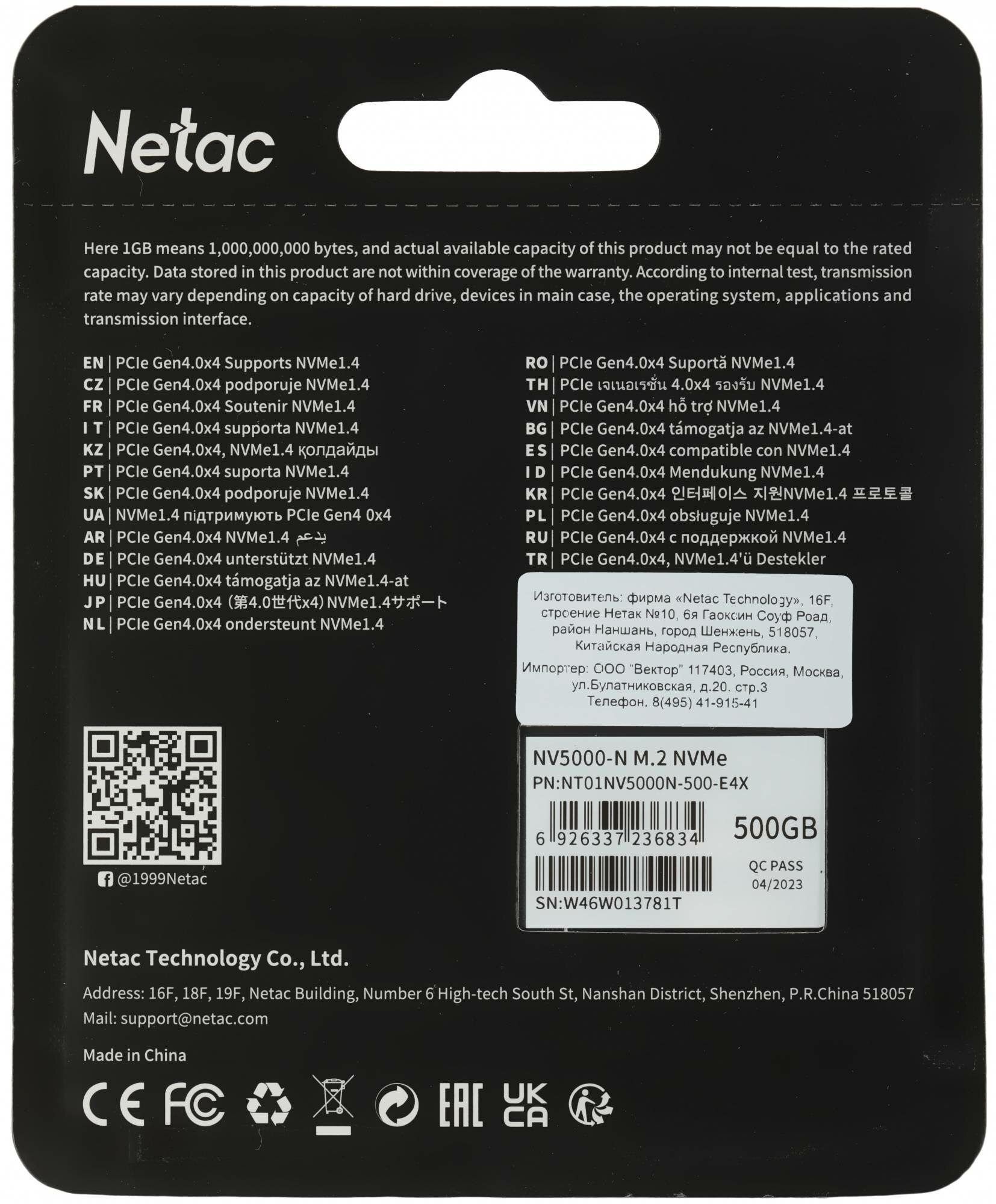 Твердотельный накопитель Netac NV5000-N Series Retail 500Gb NT01NV5000N-500-E4X