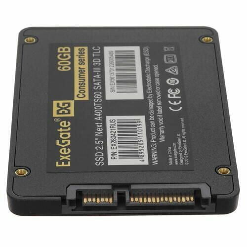 Накопитель SSD 2.5" 60GB ExeGate Next A400TS60 (SATA-III, 3D TLC)EX280421RUS