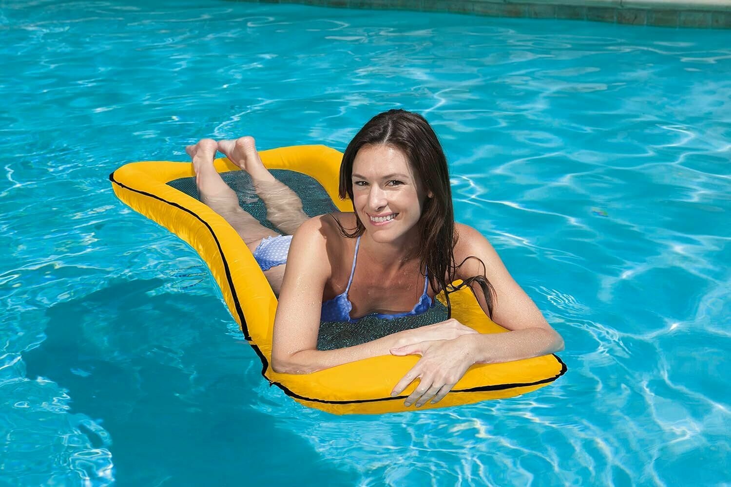 Надувной матрас-шезлонг для плавания сетчатый 178х94см с подголовником, синий до 100кг, 58836