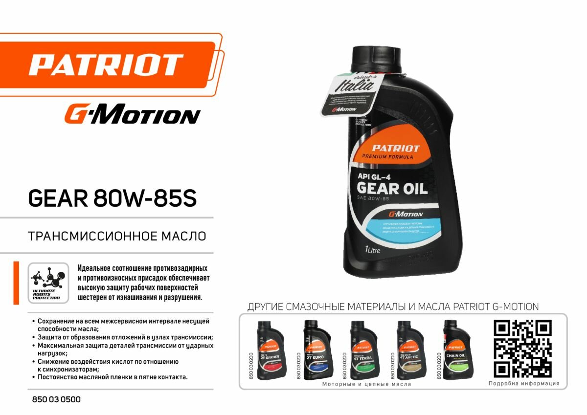 Масло трансмиссионное PATRIOT 850030500, 80W-85, 1 л, 1 шт.