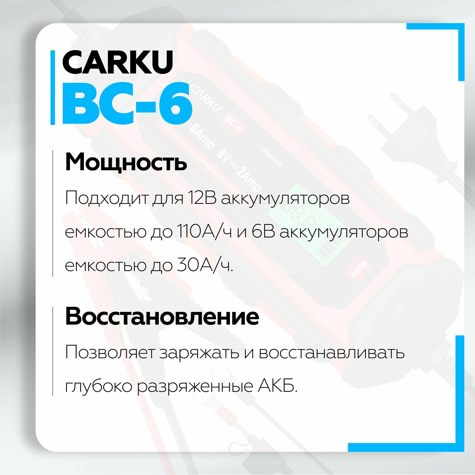 Зарядное устройство CARKU BC-6 ,до 70А·ч CARKU BC-6 CARKU BC-6