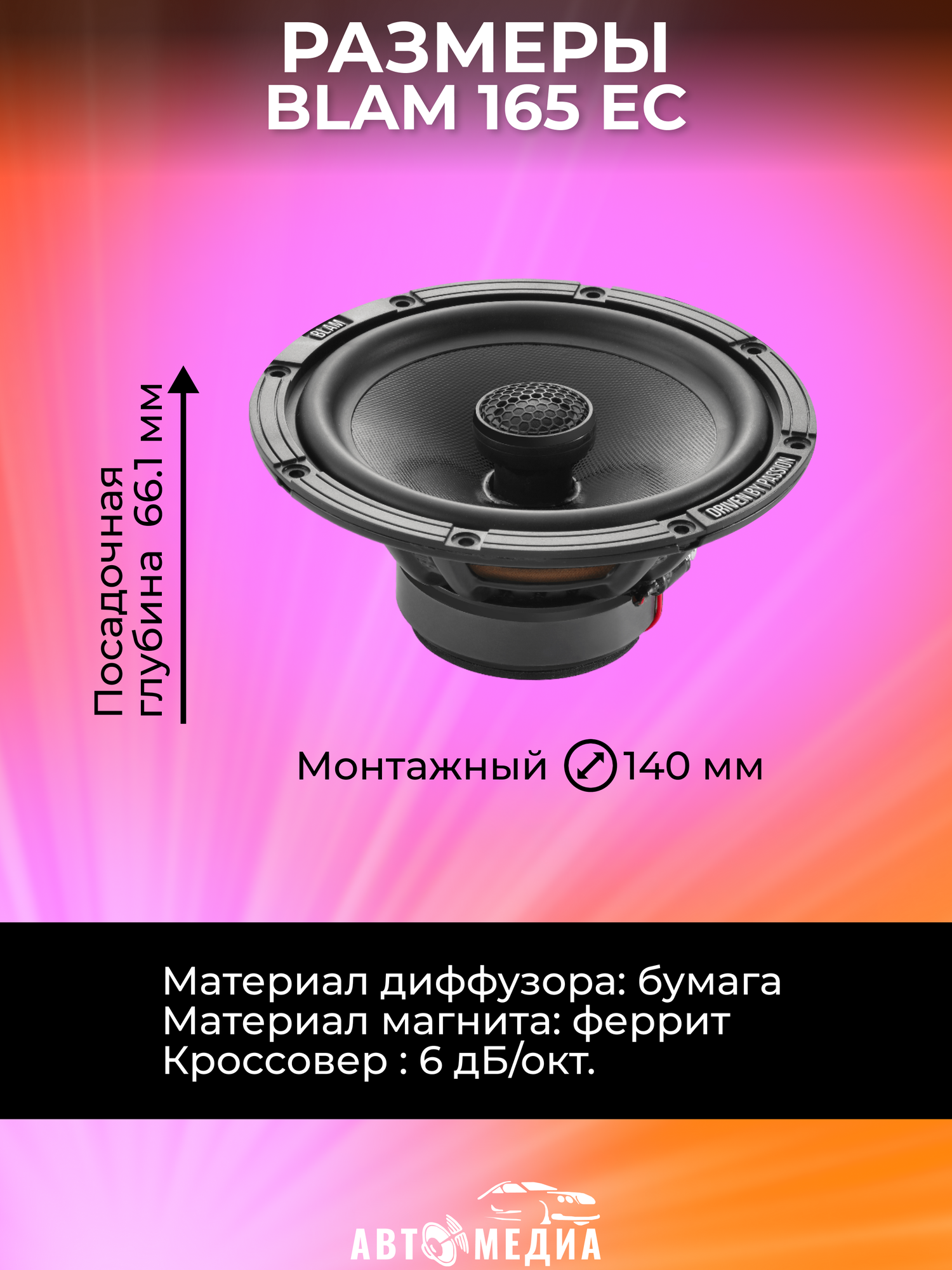 Коаксиальная автоакустика BLAM 165 EC 2-полосная, 6,5 дюйма, 120 Ватт, 93,5 дБ, 2 Ома интересное: