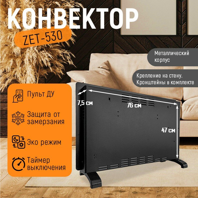 Конвектор ZENET ZET-530, 2000Вт, с терморегулятором, черный