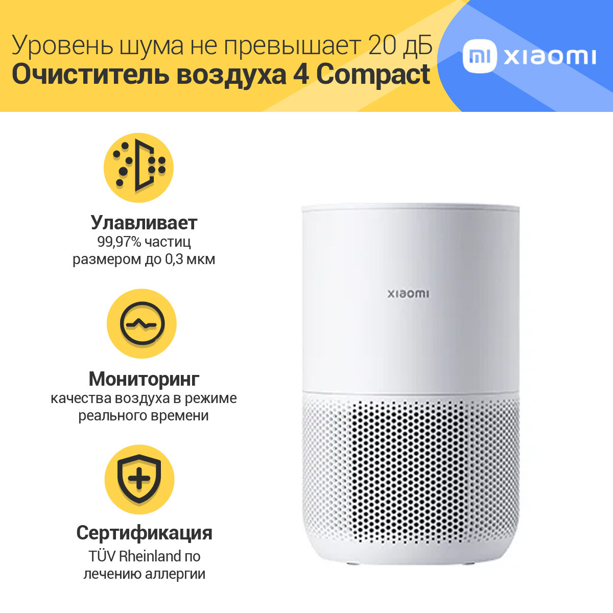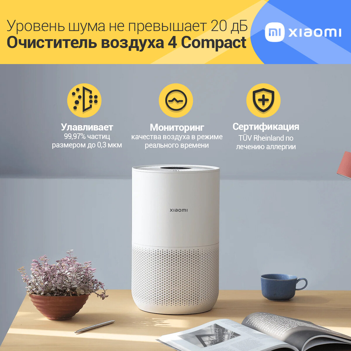 Очиститель воздуха XIAOMI Mi Smart Air Purifier 4 Compact, 27 Вт, площадь до 48 м2, белый