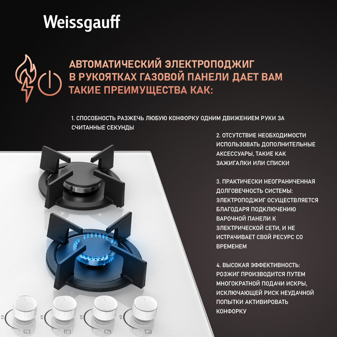 Варочная панель Weissgauff HG 640 WG экспресс-конфорка, 3 года гарантии, автоматический электроподжиг, Рукоятки Hi-Tech интересное: