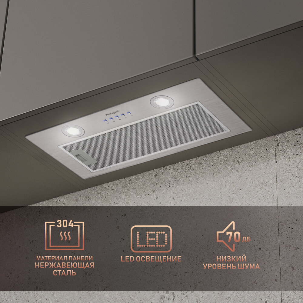 Купить Кухонная встраиваемая вытяжка Weissgauff Dabih 60 IX 3 года гарантии, Алюминиевый жировой фильтр, Низкий уровень шума
