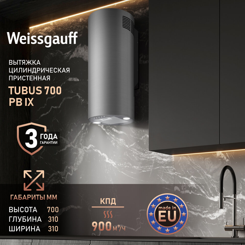 Купить Вытяжка цилиндрическая пристенная Weissgauff Tubus 700 PB IX 3 года гарантии, Алюминиевый жировой фильтр, Низкий уровень шума