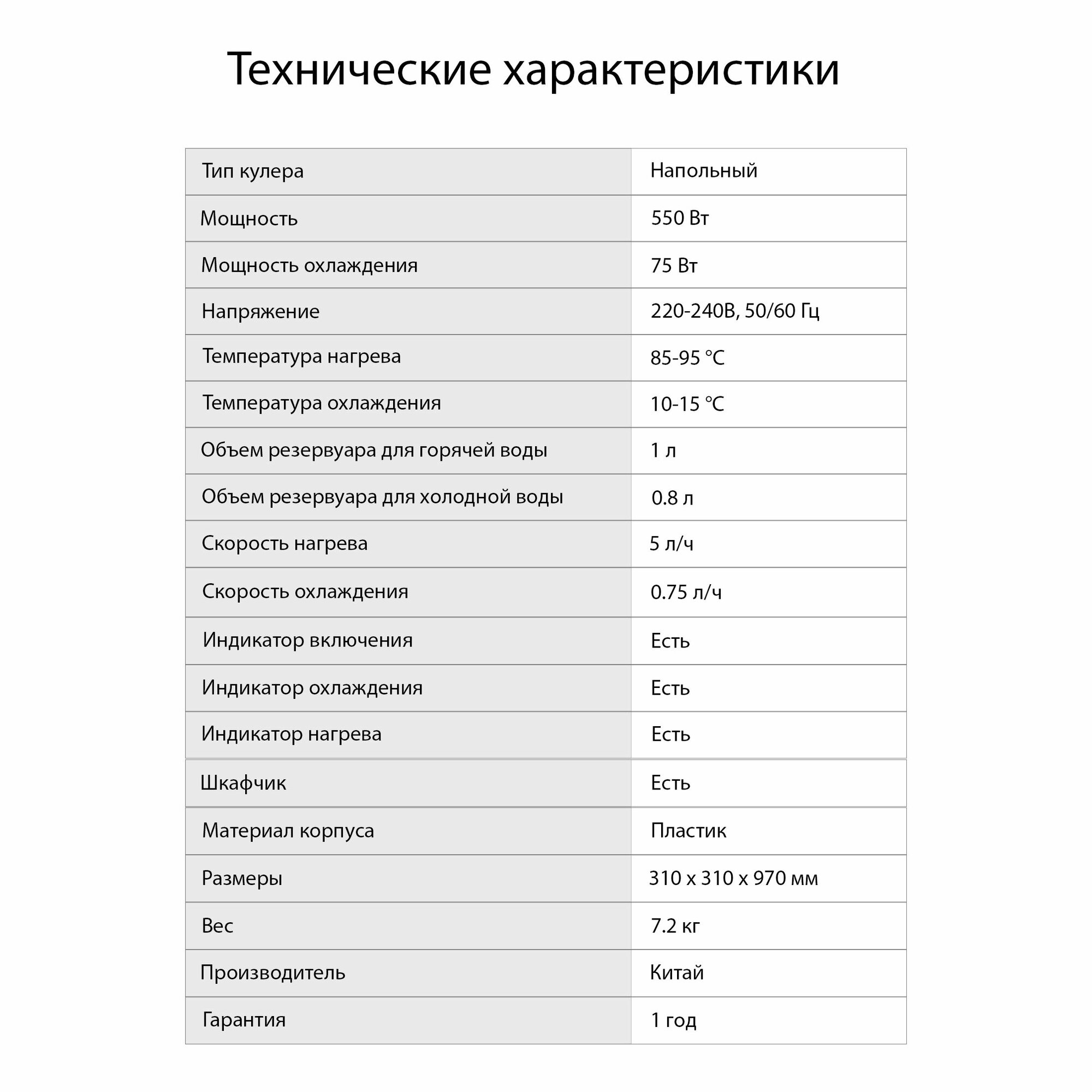 | Отзыв: | Пользуюсь уже месяц и могу сказать, что кулер отличается стабильной работой. Особенно порадовал шкафчик для посуды – удобное место для хранения чашек. |