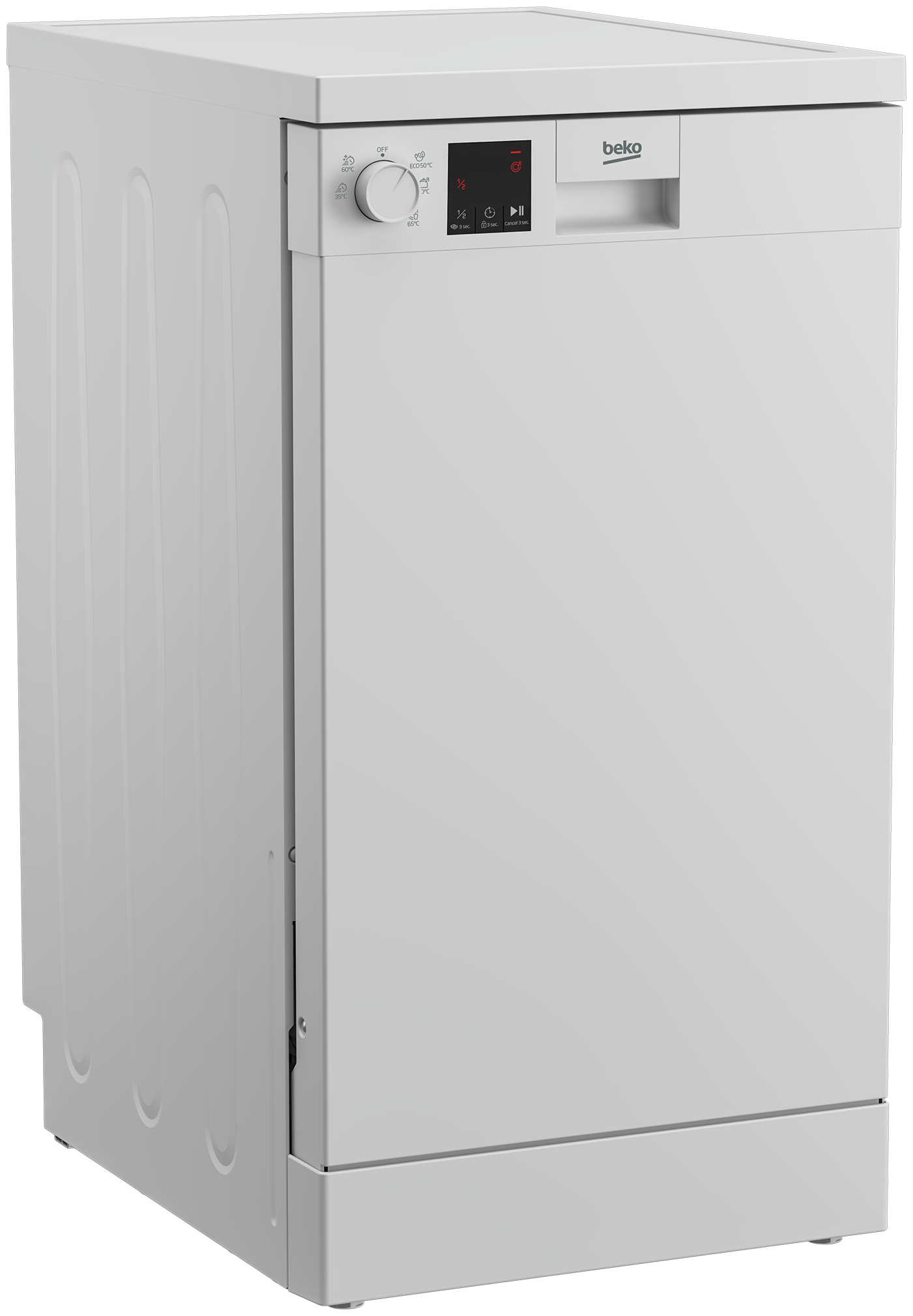 Купить Посудомоечная машина Beko DVS050R01W, узкая, напольная, 44.8см, загрузка 10 комплектов, белая [7656208335]