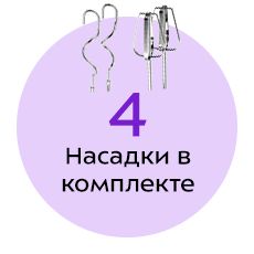| Насадки | крючки для замешивания теста / венчик для взбивания |