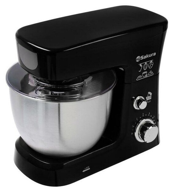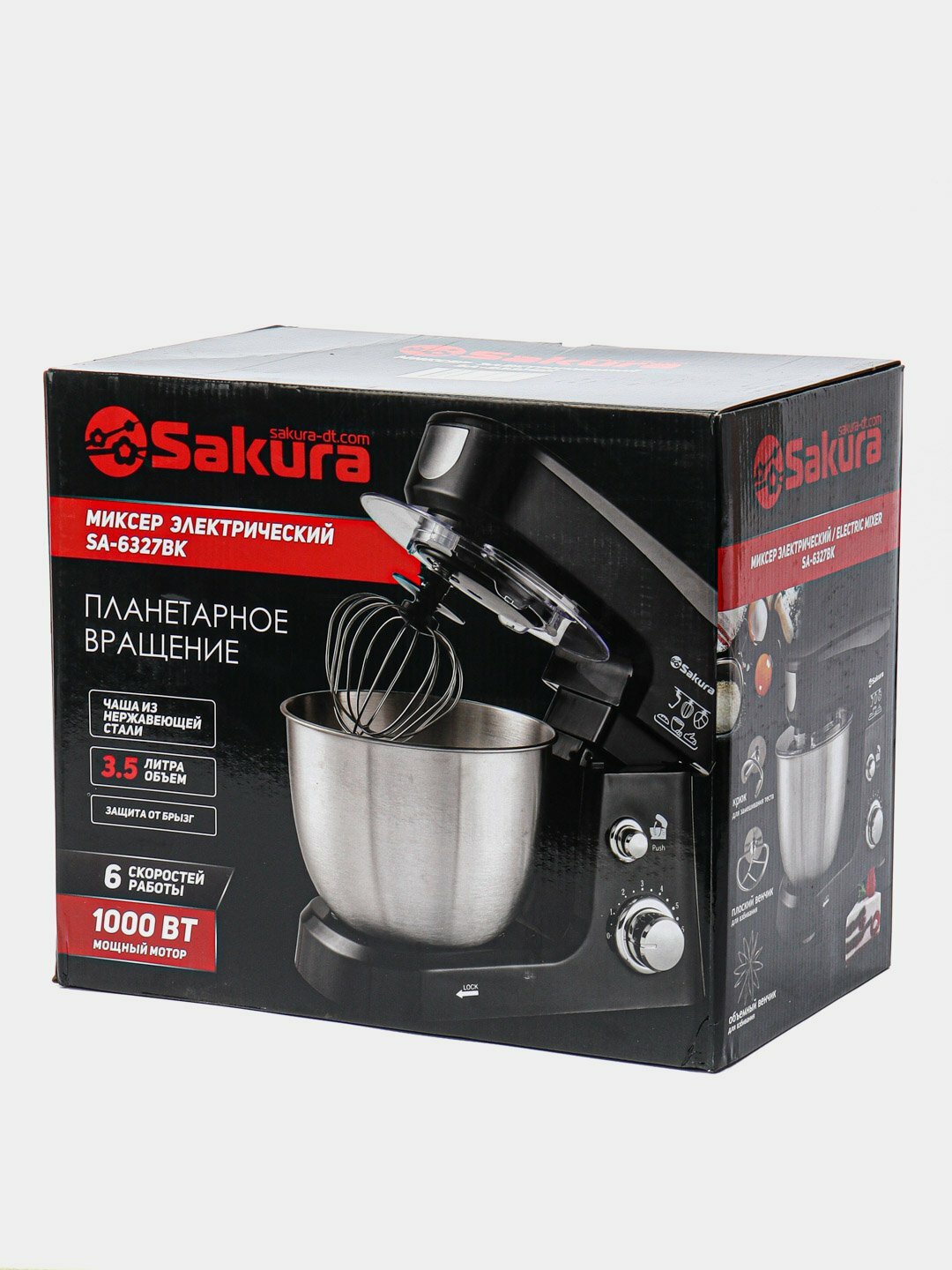 Миксер электр Sakura с чашей SA-6327BK планетарный 1000Вт 3,5л 6скоростей.