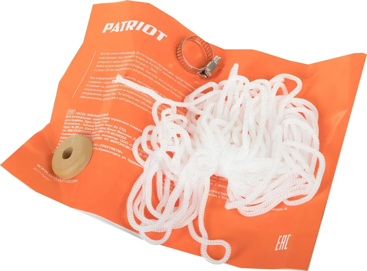 Насос погружной вибрационный PATRIOT VP 10, верхний забор, 250 вт, 18 л/мин, H-60 м, D-96 мм. термоз