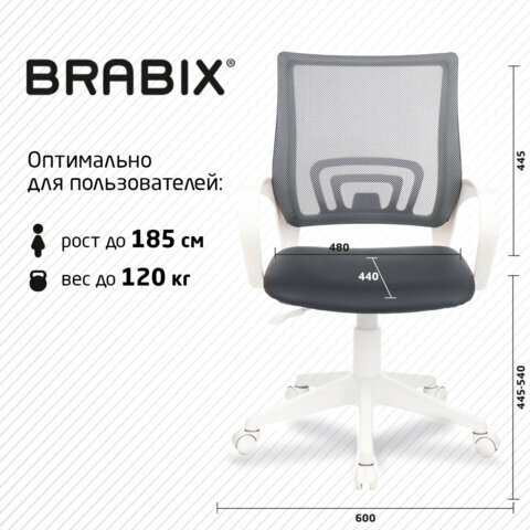 Кресло Brabix fly, mg-396w, с подлокотниками, пластик белый, сетка, темно-серое (MG-396W_532400)