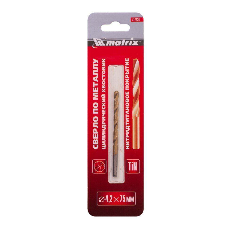 MATRIX Сверло по металлу, 4,2 мм, HSS, нитридтитановое покрытие, цилиндрический хвостовик Matrix, ( 717420 ) интересное: