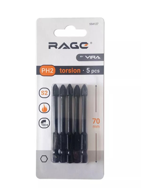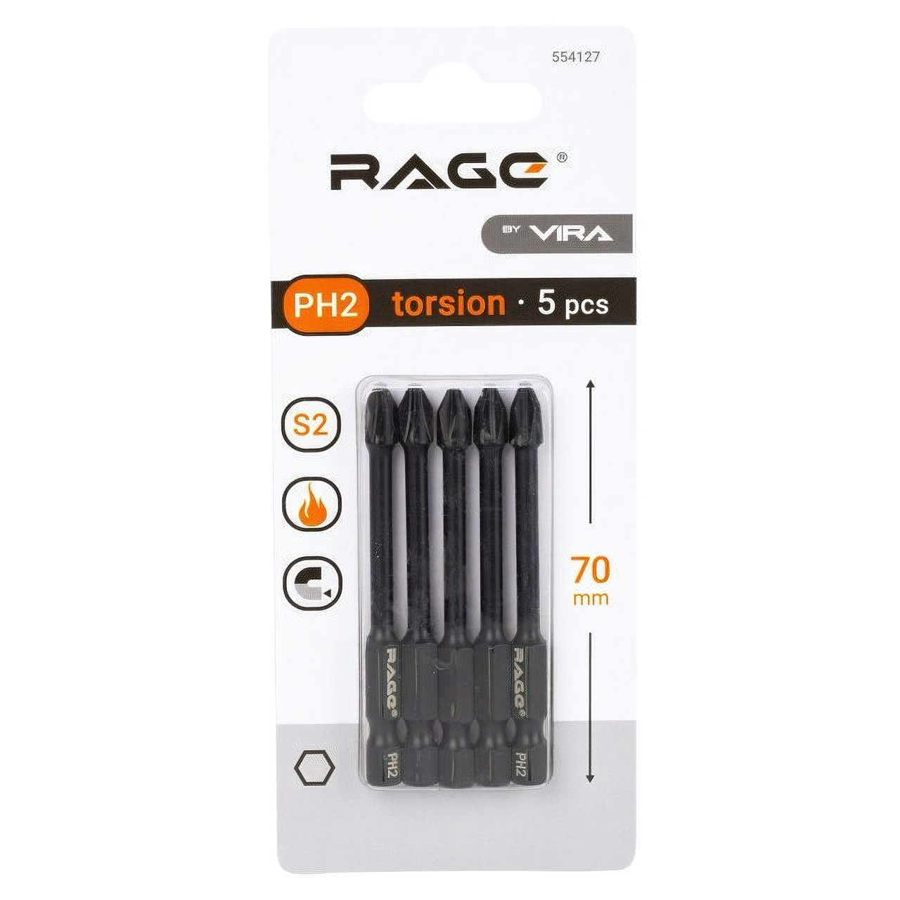 VIRA RAGE Биты торсионные S2 PH2x70мм 5шт. 554127