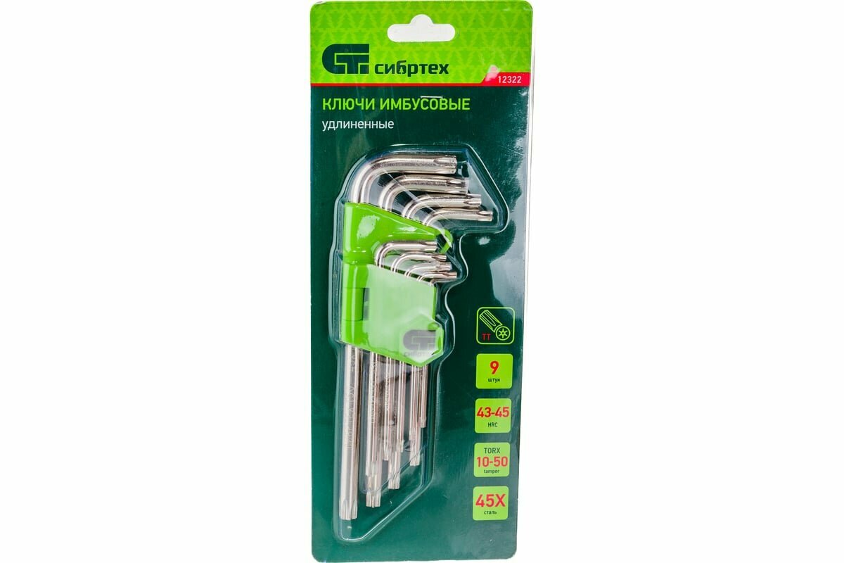Набор Ключей Имбусовых Tamper-Torx, 9 Шт: Тт10-Тт50,45x, Закаленные, Удлиненные, Никель Сибртех 1232 Сибртех 12322 Сибртех ар...