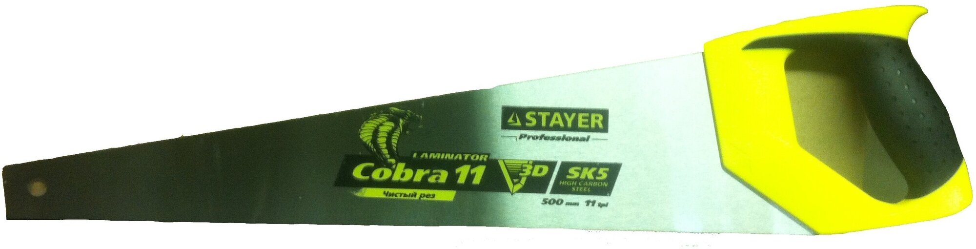 Ножовка многоцелевая (пила) COBRA Laminator 500мм, 11TPI, 3D высокоточный рез , STAYER (1516-50)