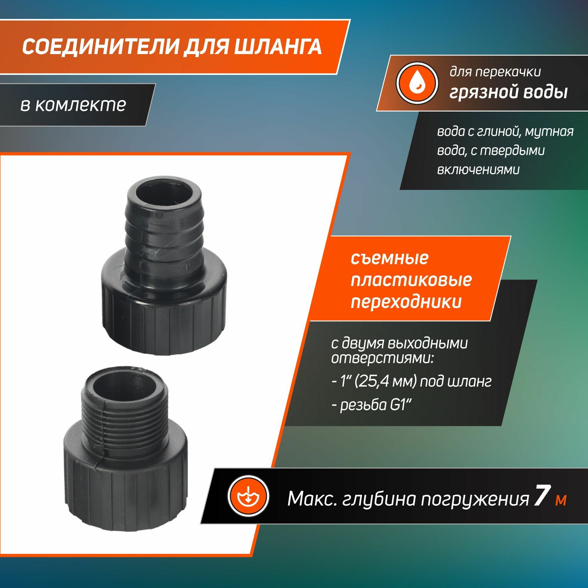Как и любой дренажник предназначен для выкачки жидкости на том размере выпускного отверстия, какой 1 дюйм реальный. Любое занижение с реального на меньший приводит к снижению параметров указанных в характеристиках. Выход дюйм, шланг 1 дюйм , тогда всё будет нормально