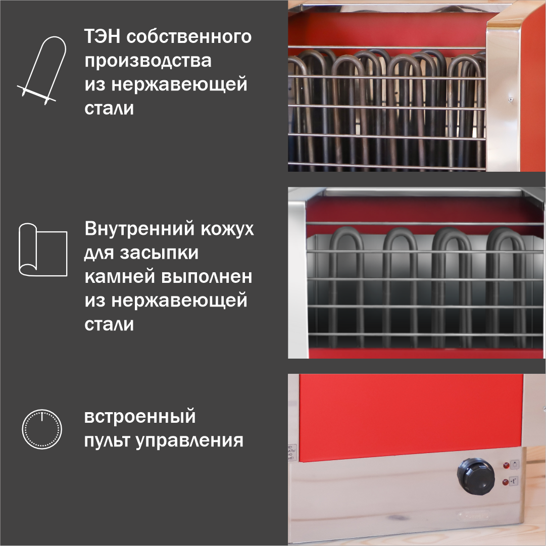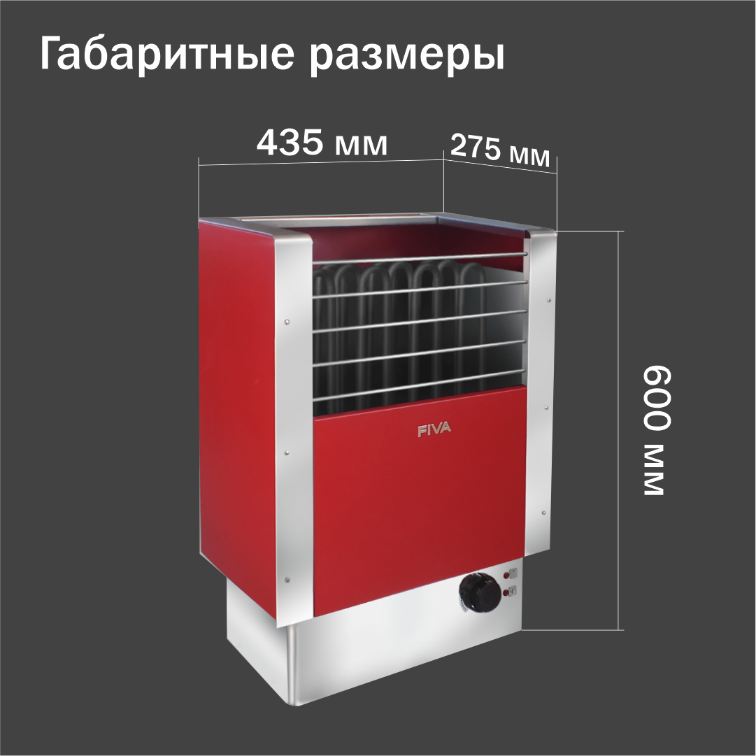 Электрокаменка УМТ Fiva ЭКМ 6 кВт (380/220 В, встроенный пульт, красная)