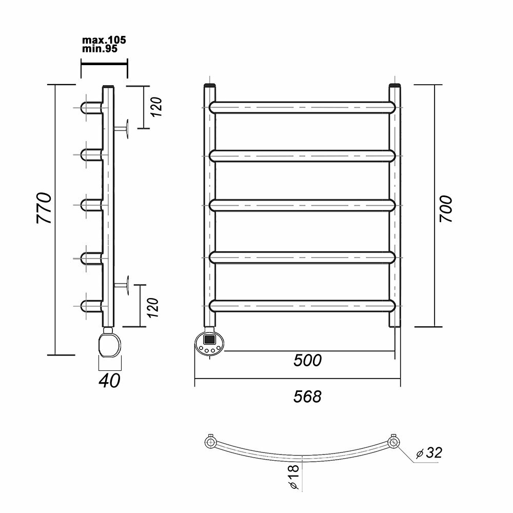 Полотенцесушитель электрический DOMOTERM калипсо 50x70 (Калипсо П5 500*700 EL) хром