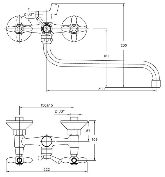 Смеситель для ванны Haiba HB2227-2, хром (хром / глянцевая)