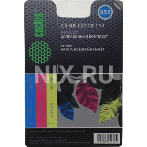 Заправка Cactus 655 CS-RK-CZ110-112 для HP DJ IA 3525/5525/4515/4525 3x30мл цветной
