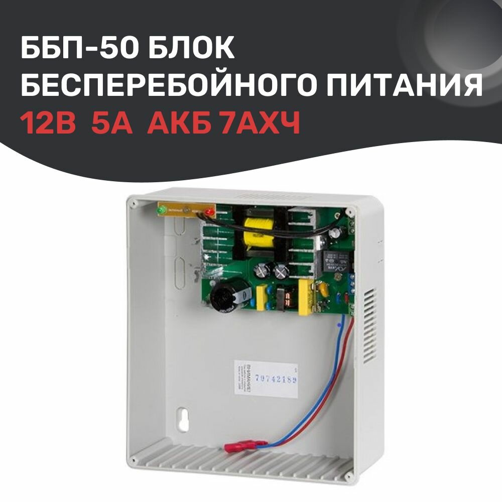 Источник бесперебойного питания ББП-50 пластиковый корпус 12 В, 5А, под АКБ 7 ач