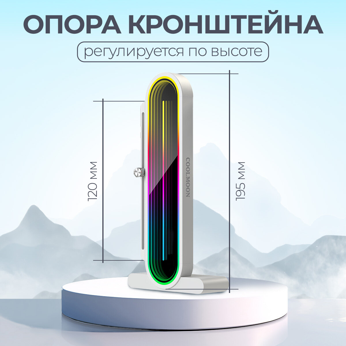 Кронштейн держатель (вертикальная стойка) с подсветкой ARGB для видеокарт NVIDIA и тд, планка COOLMOON, 42-175мм, белый