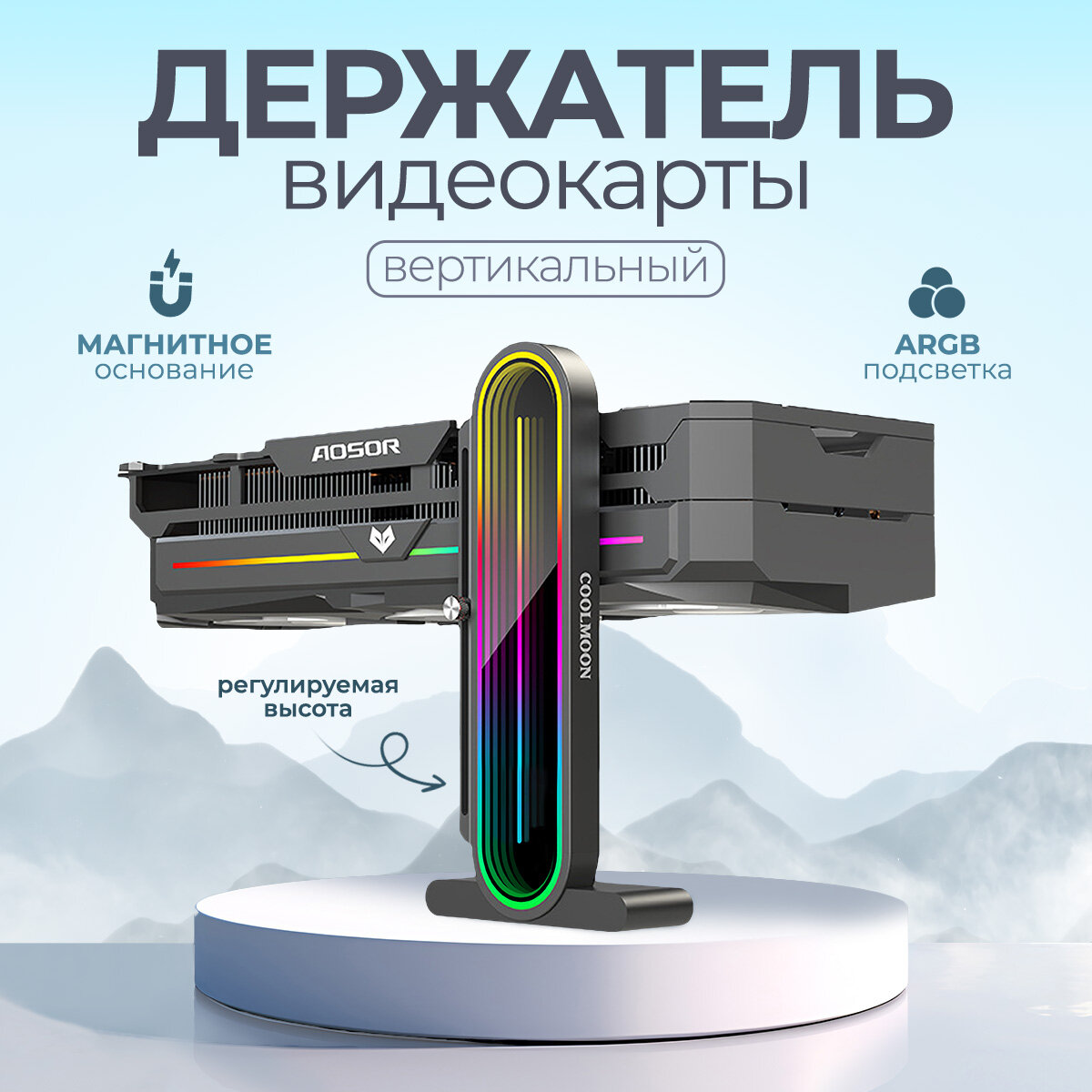 Вертикальный держатель COOLMOON (кронштейн) видеокарты NVIDIA GeForce RTX, GTX, Quadro, AMD Radeon, ASUS, GIGABYTE и др, планка с подсветкой, черный