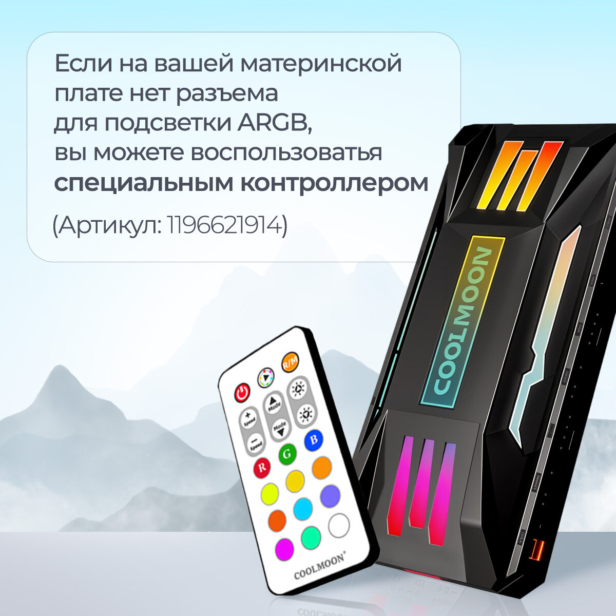 Кронштейн держатель (вертикальная стойка) с подсветкой ARGB для видеокарт NVIDIA и тд, планка COOLMOON, 42-175мм, черный