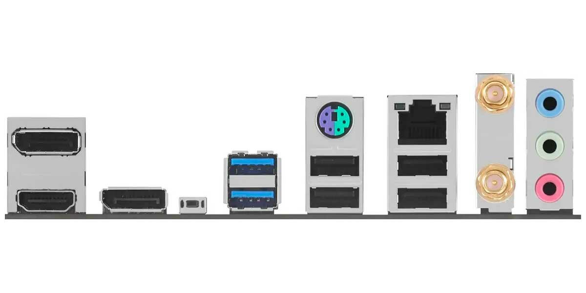 | Разъемы на задней панели | HDMI, PS/2 (клавиатура/мышь), DisplayPort x 2, USB 2.0 Type-A x 4, USB 3.2 Gen2 Type-C, USB 3.2 Gen1 Type-A x 2, USB 3.2 Gen2 Type-A |