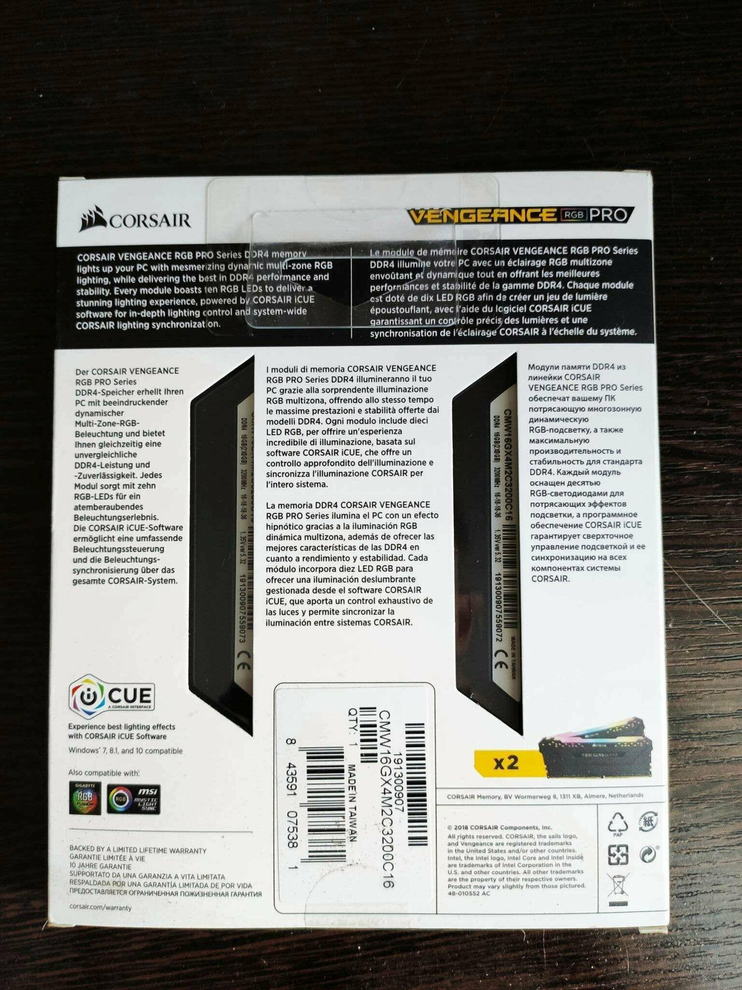Corsair DDR4 16Gb (2x8Gb) 3200MHz pc-25600 Vengeance RGB Pro black (cmw16gx4m2c3200c16) CMW16GX4M2C3 .