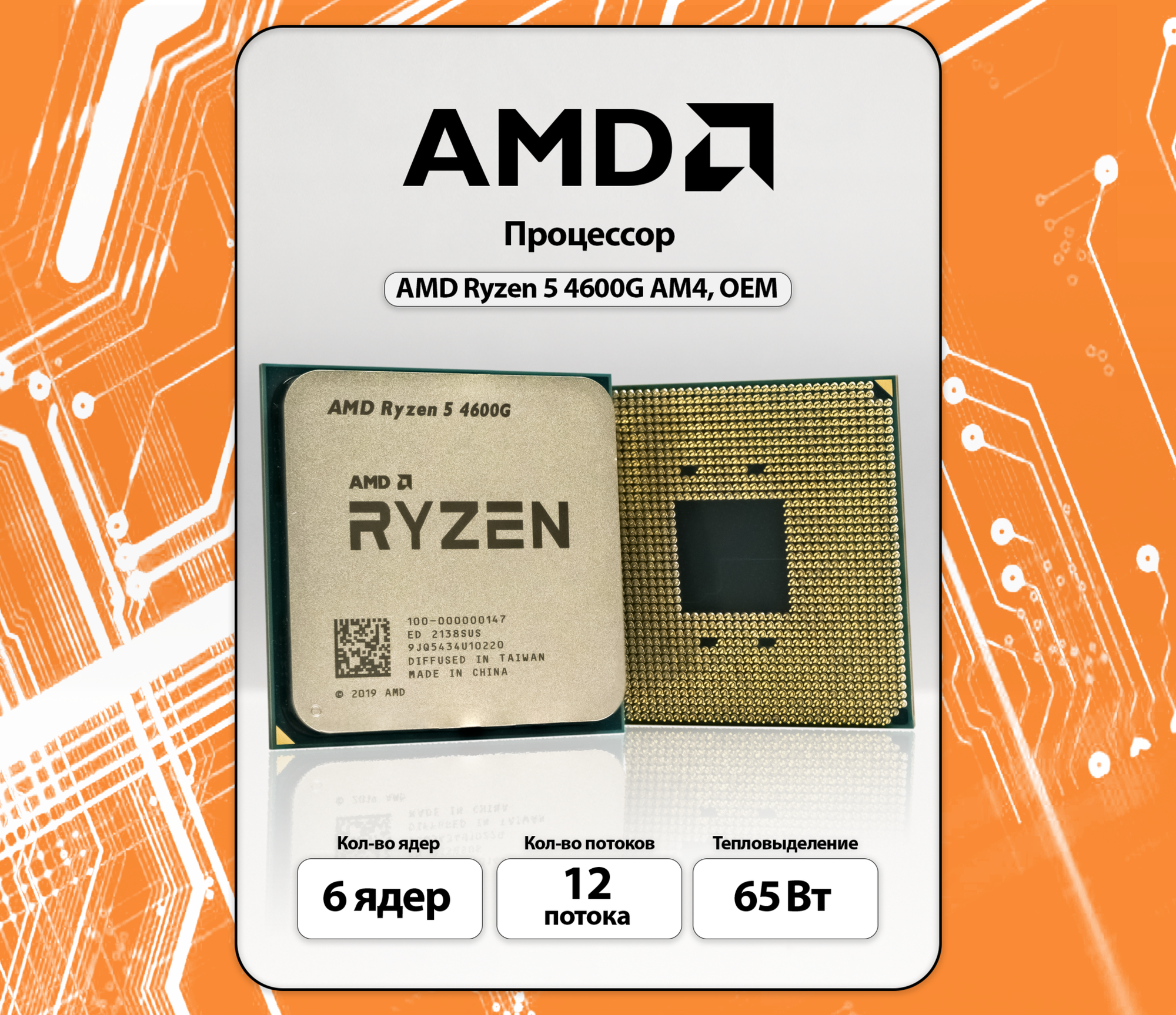 Процессор AMD Ryzen 5 4600G (Soc-AM4/3.7/4.2GHz/6C/12T/3+8Mb/65W/OEM) (100-000000147)