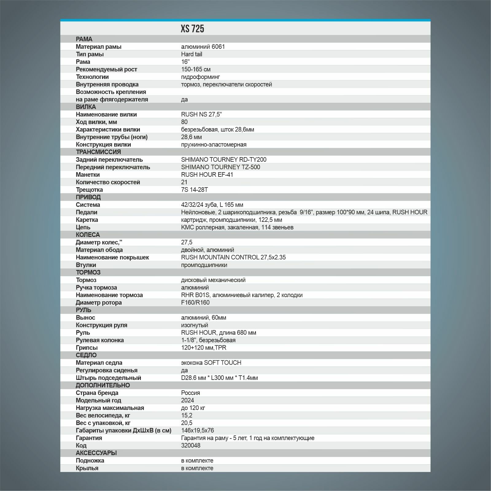 | Наименование заднего переключателя | Shimano Tourney RD-TY300 |