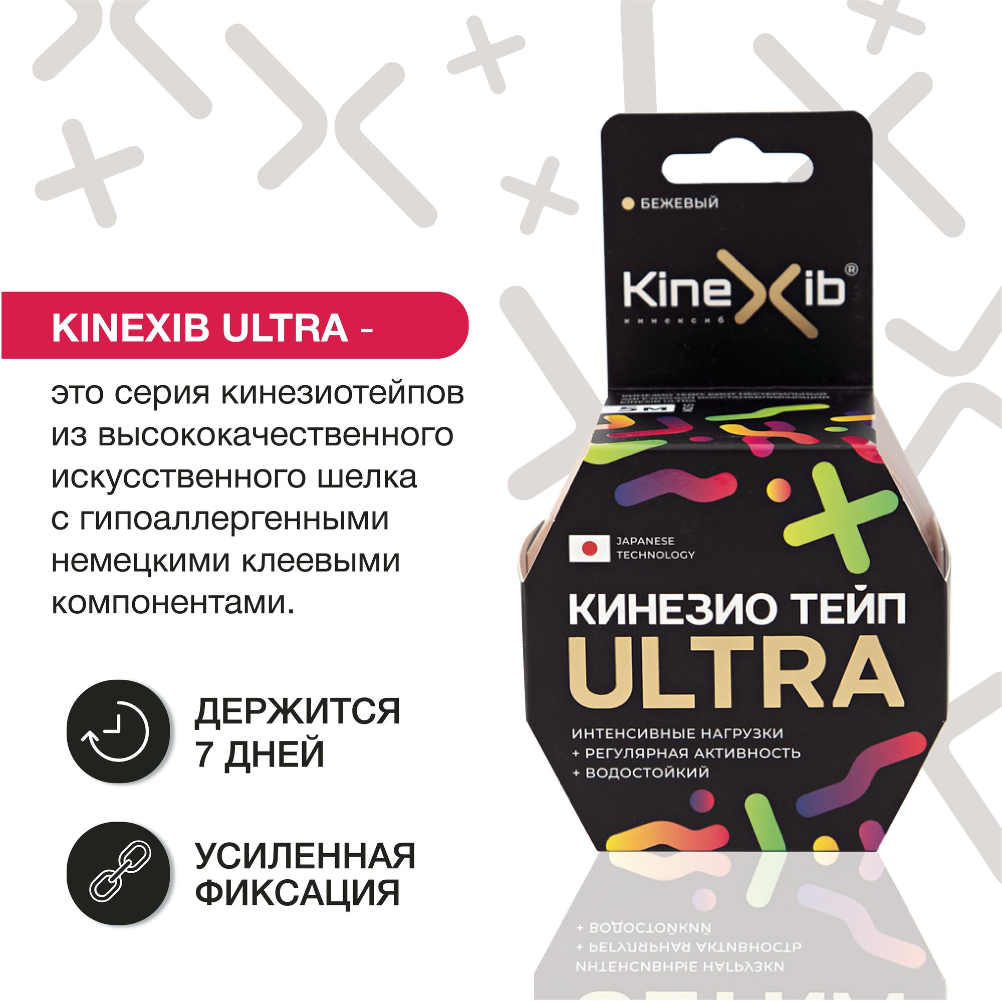 Кинезио тейп KineXib ULTRA, тейпы для тела, тейп спортивный шелковый (5м*5см), бежевый