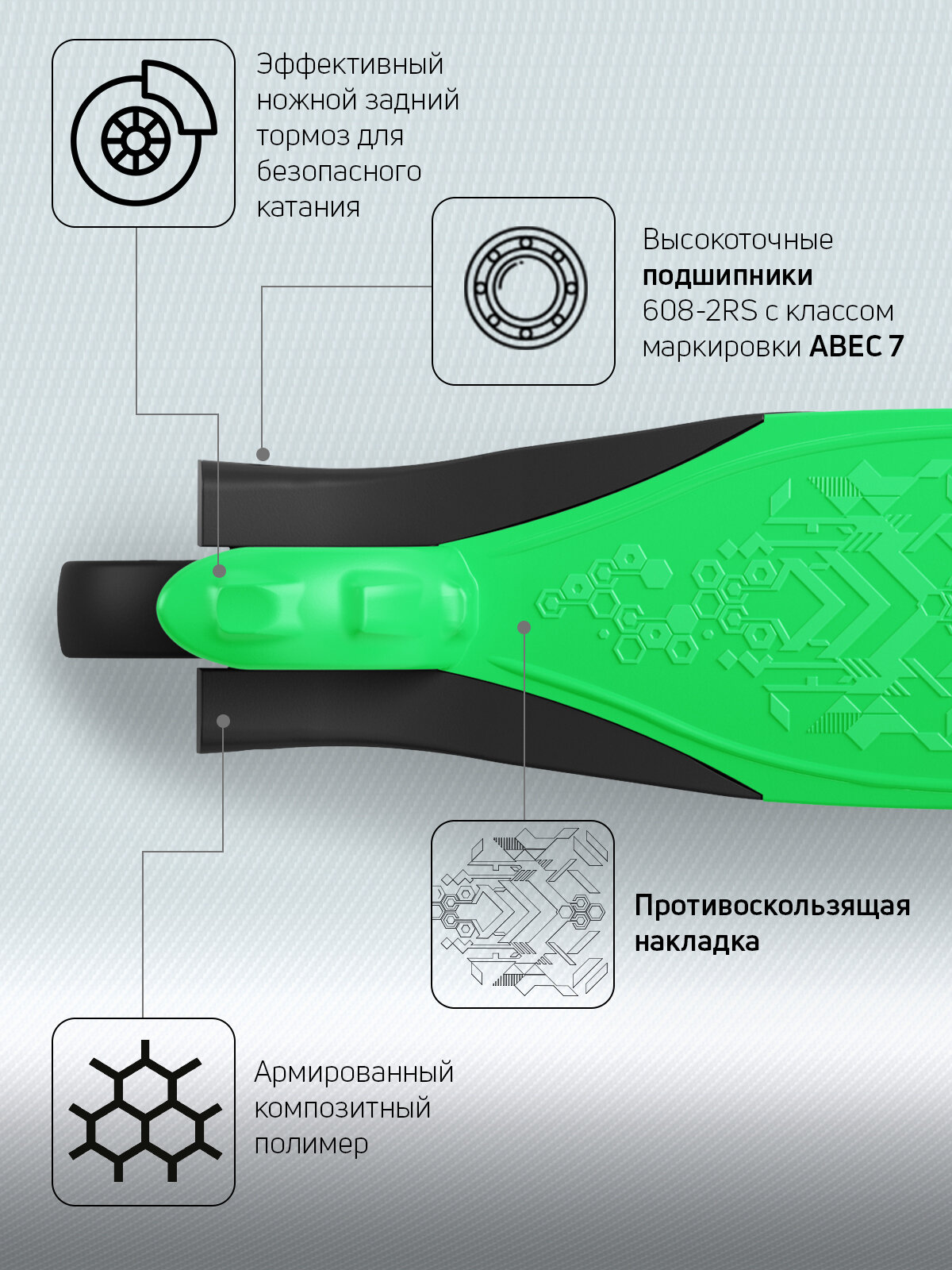 Cамокат детский трехколесный BuggyBoom Alfa Mini XR с корзинкой и подстаканником для бутылок, зеленый флюр 004-8061