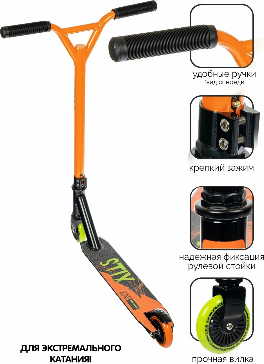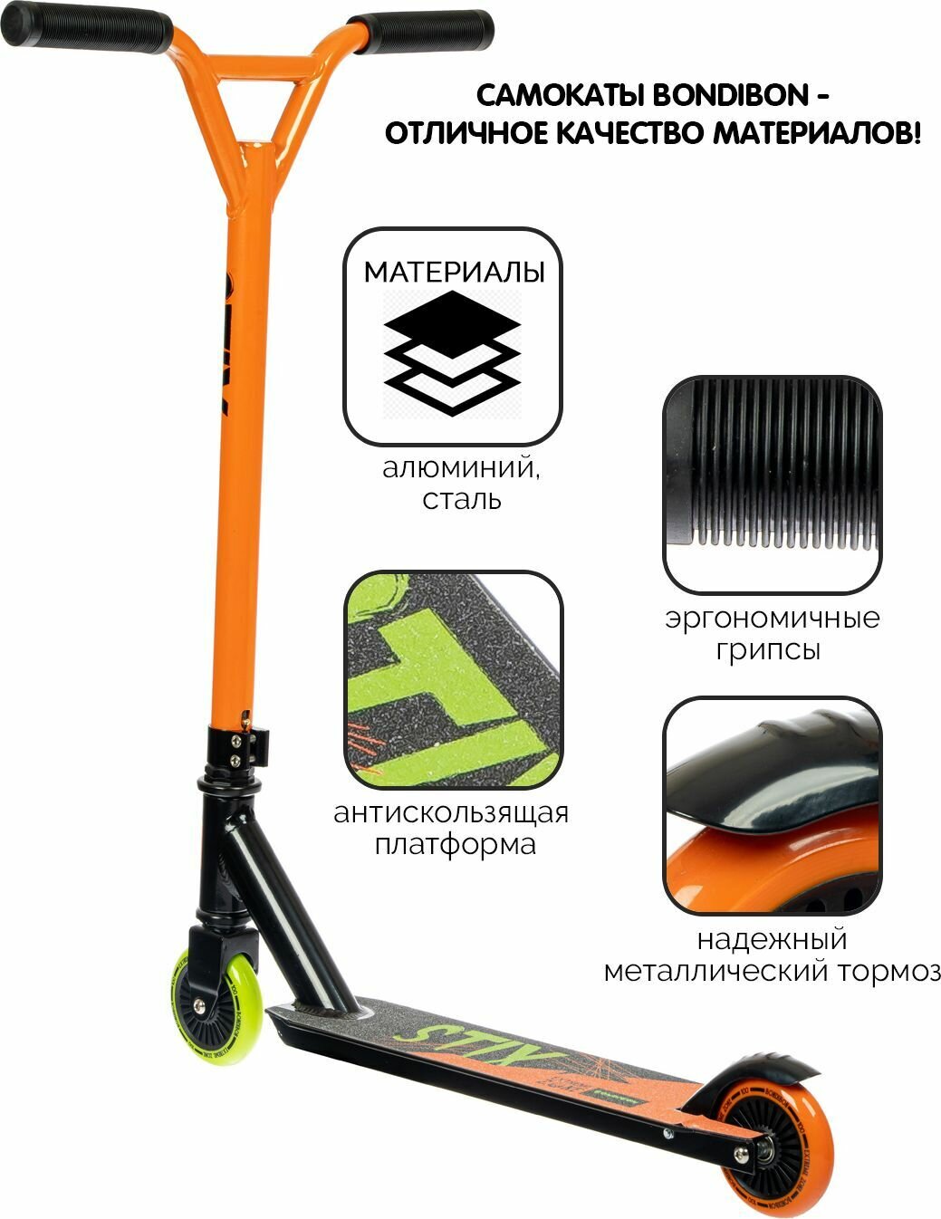 Купить Самокат трюковой Bondibon STIX 100 Plastic, двухколесный, до 100кг